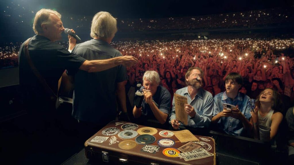 You hear it before you see it. That low, nervous roar that rolls through a crowd when everyone knows something historic is about to happen. When the opening notes of “the hit everyone knows” finally arrive, it’s not even the band playing the song anymore. It’s the arena itself. People shout the first line too early, then laugh at themselves, then go louder the second time. Some fans are recording on shaky phones, others just close their eyes, gripping the moment with bare hands. On stage, the singer holds the mic out, takes three steps back, and lets half a century of shared memory do the work.