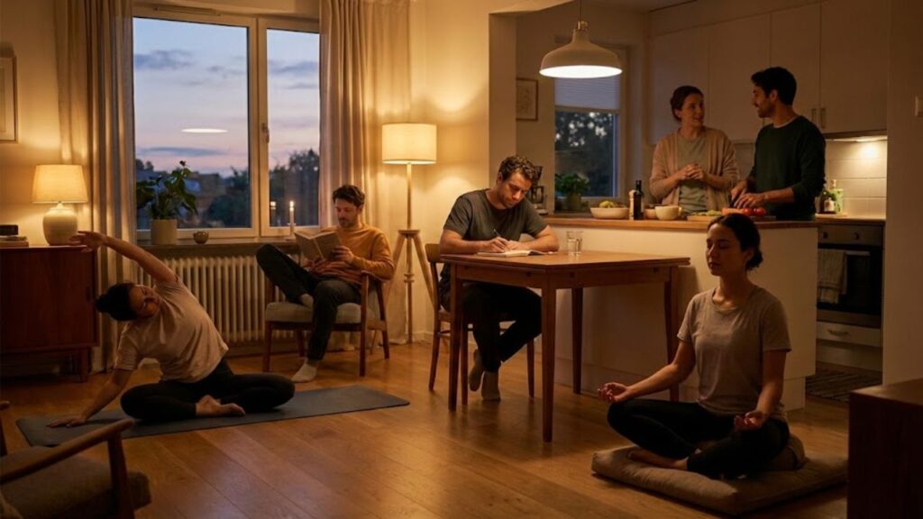 One easy strategy is to write down your evening intentions earlier in the day. A quick list on a sticky note placed somewhere visible helps eliminate decision fatigue when you get home. You don’t have to think—you just follow the plan.