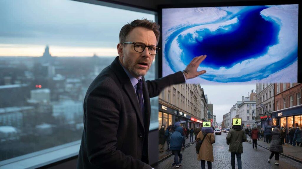 Meteorologist Simon Warburton was one of the first to say it out loud on live TV. He stated that this could act as a gateway for Arctic air. On the screen behind him a swirling mass of colors showed the polar vortex. That vast ring of frigid air high above the Arctic was starting to buckle and spill southward. On the sofa the presenter tried to translate. So this means worse than a usual cold snap?