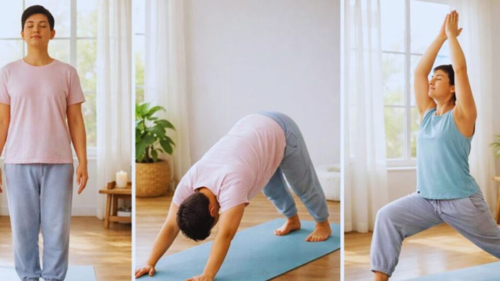 | Mountain Pose | Posture & balance | Legs, core | 5–8 breaths |