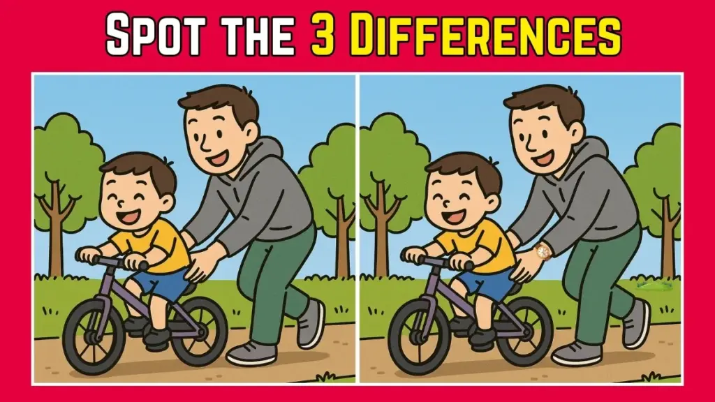 Now, let’s dive into the specifics of the “Spot the Difference” puzzle with the dad and son on their bike ride. The two images look almost identical, but when you take a closer look, you’ll notice three subtle variations. Here’s a breakdown of the differences you need to spot:
