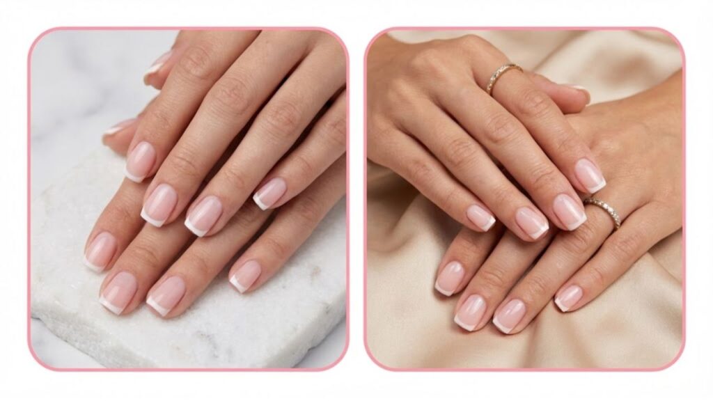 A nude base & milky white tip tend to be the most popular combination but the truth is this nail trend can be recreated with any two colors of your choosing. As a self-proclaimed nail minimalist I’ll be sticking to classic nail colors to create an elevated French manicure while still keeping the overall look pared back and elegant.
