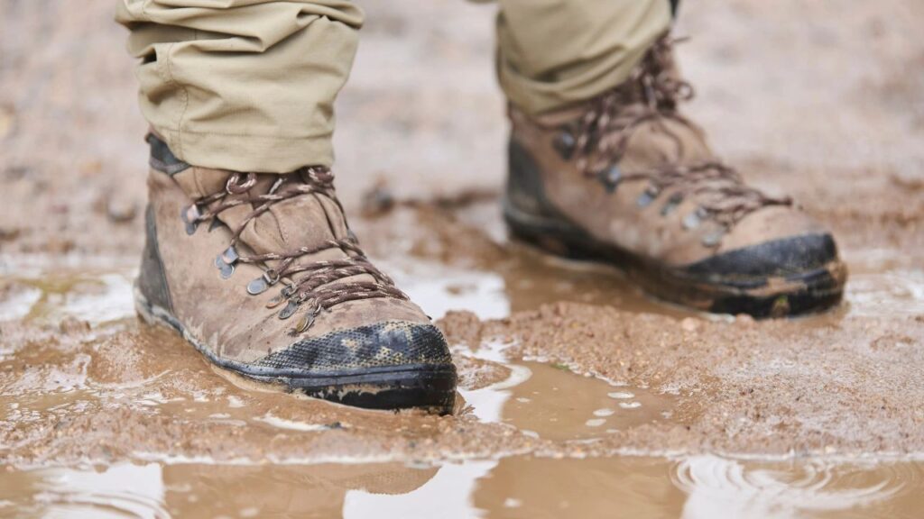 You should leave your boots outdoors or close to a window and wait for the mud to become hard and dry before cleaning them.