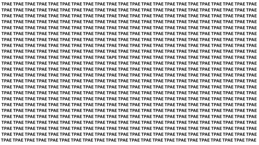 • Spot the Word “TAPE”: This optical illusion visual test challenges you to find the correctly arranged word “TAPE” hidden among several jumbled versions like “TPAE.”