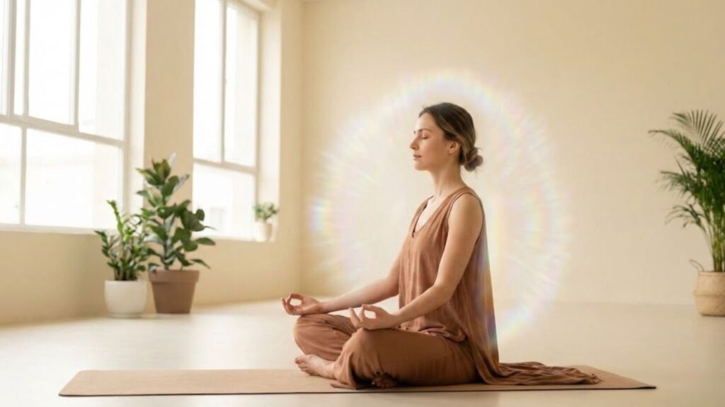 Sukhasana is an excellent starting pose for calming the mind. Sitting comfortably with an upright spine supports slow, steady breathing. When paired with deep breaths, this pose helps reduce mental noise and promotes a sense of grounding.